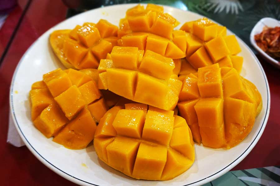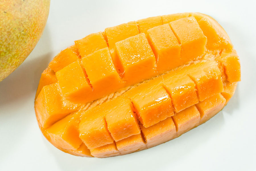 dojrzałe są słodkie, miękkie i soczyste, da się je przepołowić, rozrywając gołymi rekami, a ich miąższ nie jest zielony, ani zielonkawy, tylko złocisty, żółtopomarańczowy
