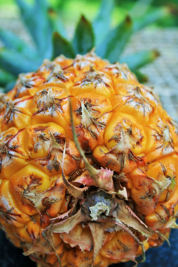 zielone ananasy są niedojrzałe i nie dojrzeją po zerwaniu, ponieważ należą do owoców nieklimakterycznych (wyjaśnienie niżej); dojrzałe ananasy są złociste, żółtopomarańczowe i mają wyraźny, słodki zapach i smak, a ich rdzeń jest w przypadku bardzo dojrzałych owoców miękki, niełykowaty i jadalny; w przeciwieństwie do niedojrzałych ananasów nie wywołują pieczenia ani zaczerwienienia błon śluzowych jamy ustnej podczas jedzenia