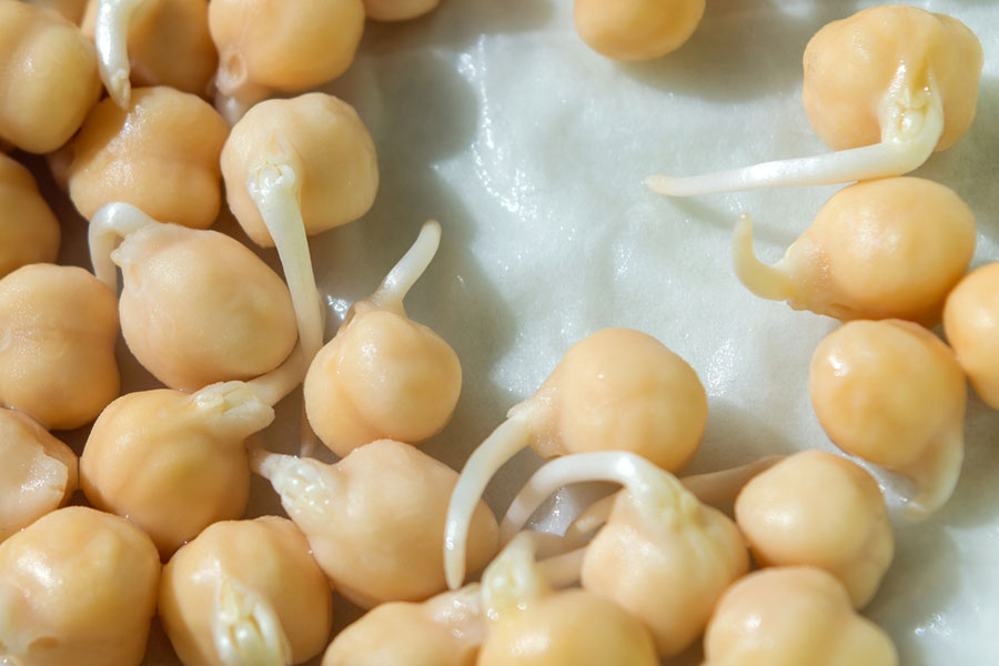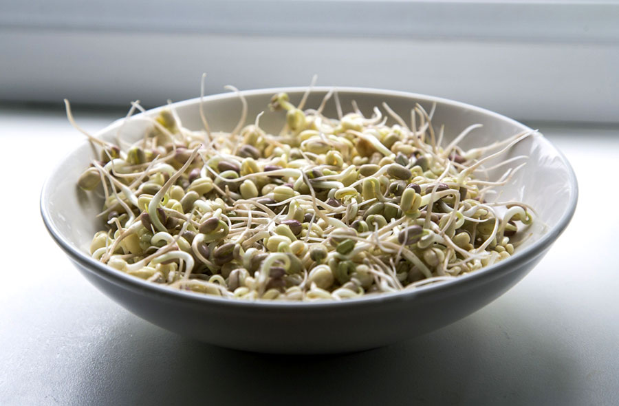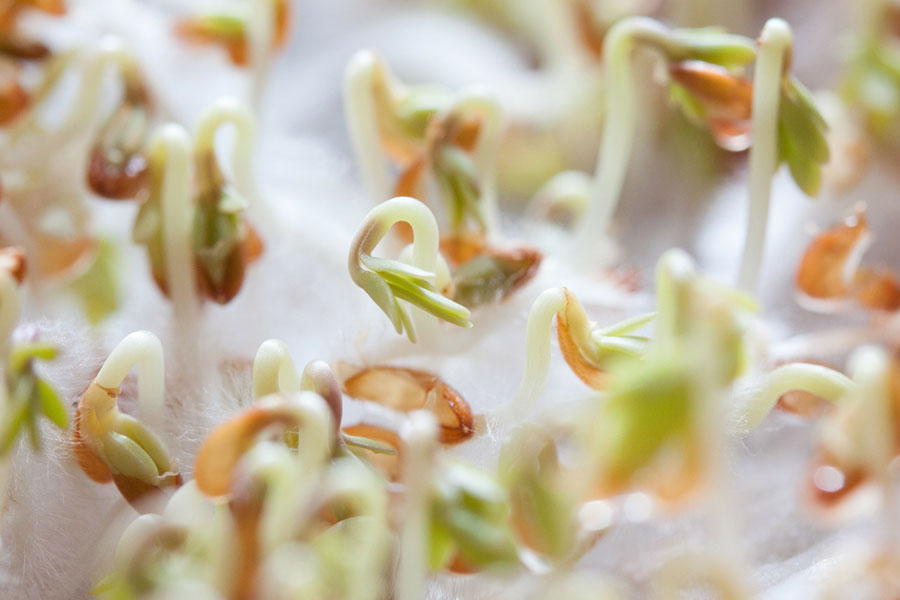 - kiełkować dalej, przepłukując 2–3 razy dziennie wodą w celu wyhodowania kiełków (np. kiełki kaszy gryczanej, żyta, fasolki mung, ciecierzycy, soczewicy), zielonych kiełków np. (np. kiełki alfa-alfa, brokuła, rzodkiewki, rzeżuchy) lub mikro-zieleniny (np. słonecznik, groszek, trawa pszeniczna, jęczmienna).
